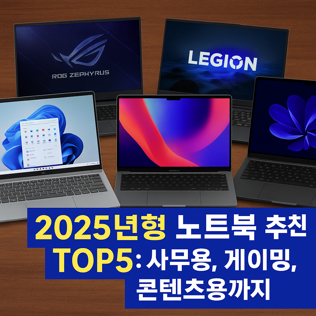 2025년 최신 노트북 중 사무용, 게이밍, 콘텐츠 제작 등 용도별로 가장 추천할만한 제품 TOP5를 소개합니다. 성능, 가격, 휴대성까지 꼼꼼히 비교해보세요!