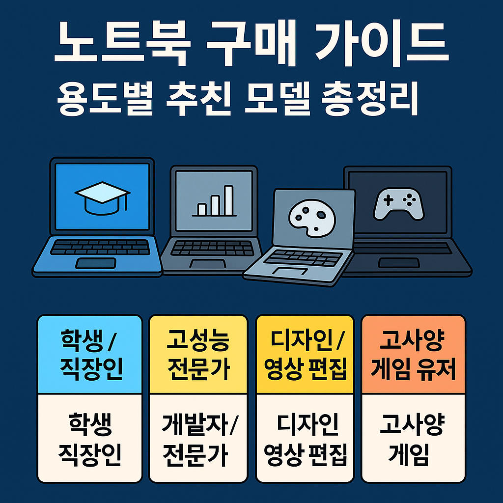 2025년 노트북 구매 가이드! 용도별 추천 모델과 필수 스펙 비교를 통해 학생, 직장인, 디자이너, 게이머 모두에게 딱 맞는 노트북을 찾아보세요. 최신 트렌드까지 반영된 스마트한 선택법!
