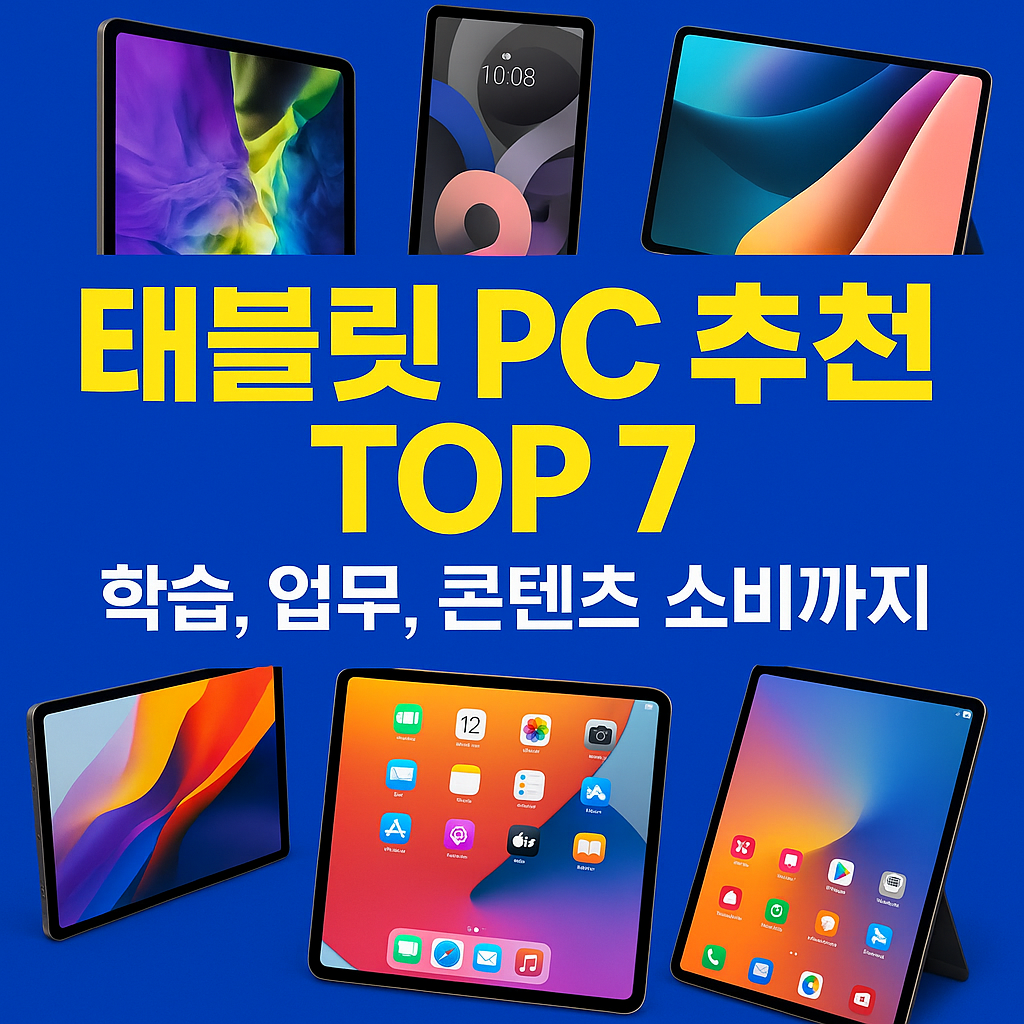 2025년 태블릿 PC 추천 TOP 7! 학습용, 업무용, 영상 감상까지 용도별 최고의 모델을 비교 분석합니다. 예산, OS, 성능까지 고려한 구매 가이드!